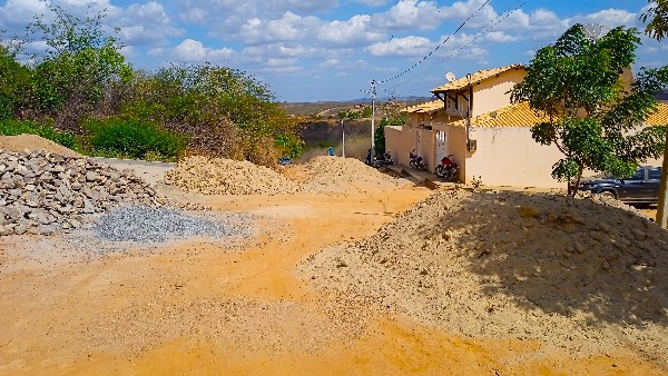 Desta vez, os trabalhos de pavimentação estão sendo realizados em ruas do bairro Três Poderes, por trás da Estação de Tratamento de Água da Cagece (ETA), e subindo sentido a Maçonaria.