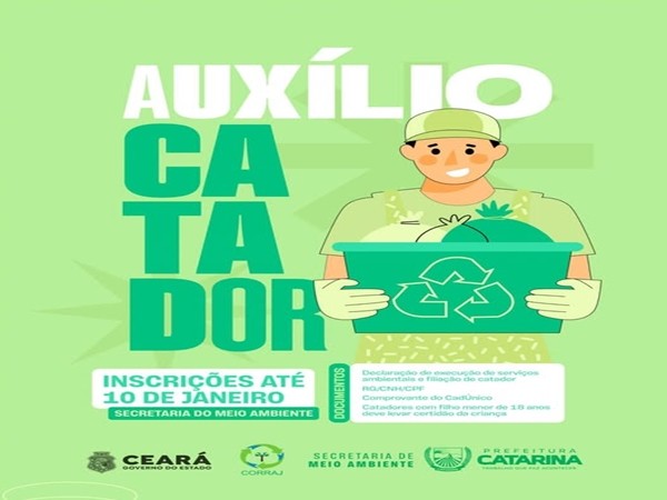 Estão abertas as inscrições para o Auxílio Catador em Catarina, até o próximo dia 10/01, na Secretaria do Meio Ambiente