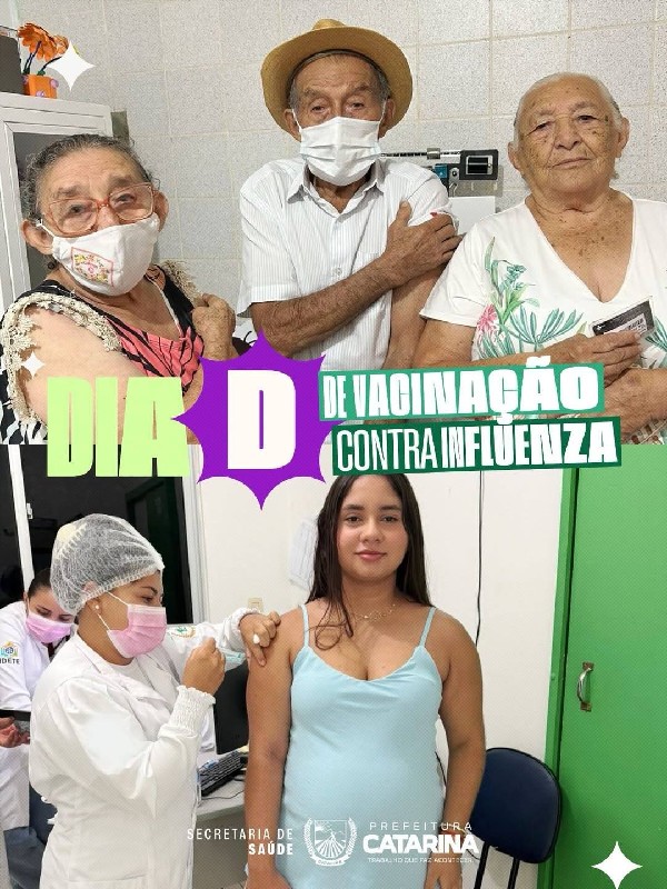 A Prefeitura de Catarina, por meio da Secretaria de Saúde, promoveu mais uma importante ação de cuidado com a população: o Dia D de vacinação contra a Influenza.