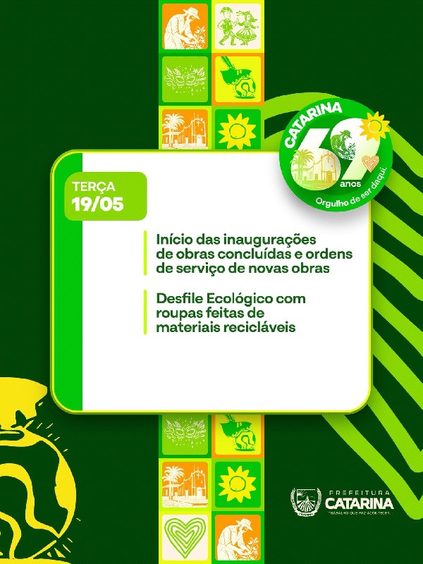 De 17 a 25 de maio, nossa cidade estará em festa com uma programação especial preparada com muito carinho para toda a população: cultura, tradição,