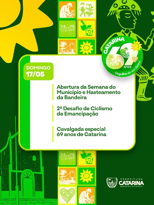 De 17 a 25 de maio, nossa cidade estará em festa com uma programação especial preparada com muito carinho para toda a população: cultura, tradição,