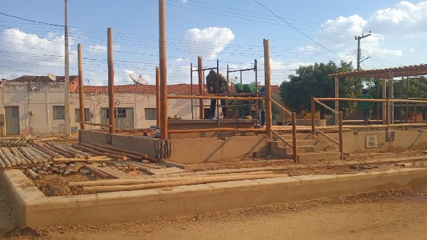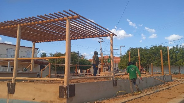 Construção da Praça da Vila São Gonçalo, no município de Catarina.
