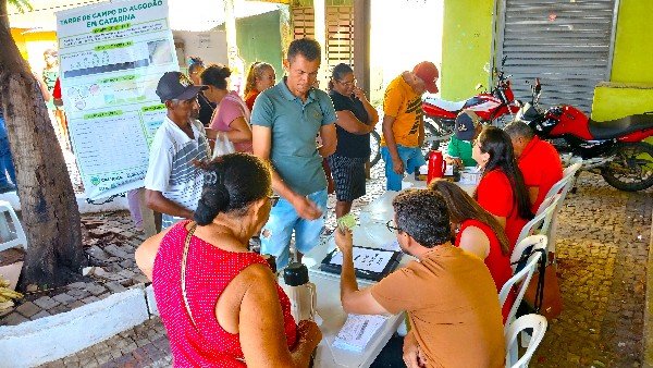 A Prefeitura de Catarina, a Secretaria Municipal de Agricultura e a Ematerce de Catarina imprimiram 770 boletos de agricultores (as) cadastrados (as) no Programa Garantia Safra 2025/2026, e realizaram a entrega nesta sexta-feira (30/01), durante a Feira Livre de Catarina, no Centro da Cidade, em frente ao Polo de Lazer.