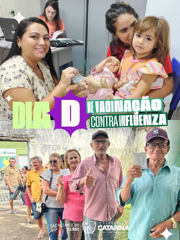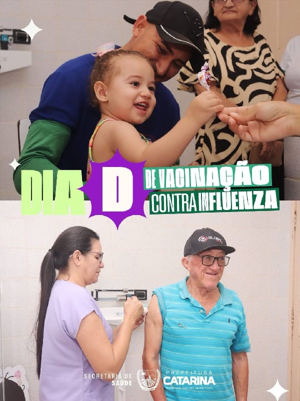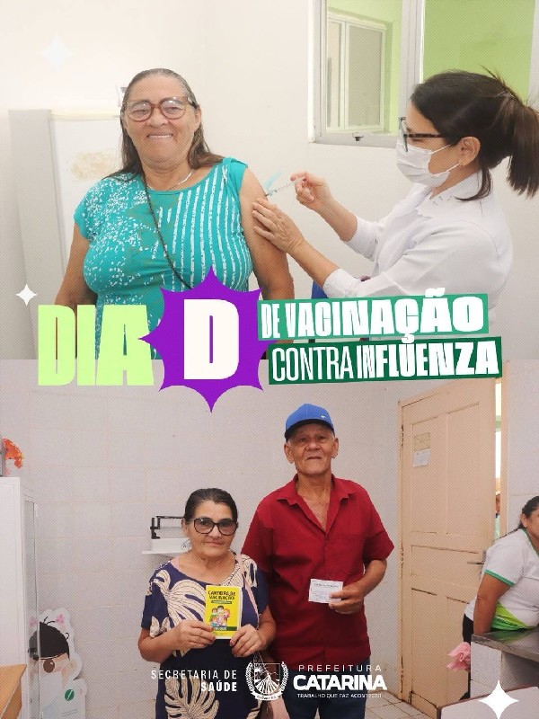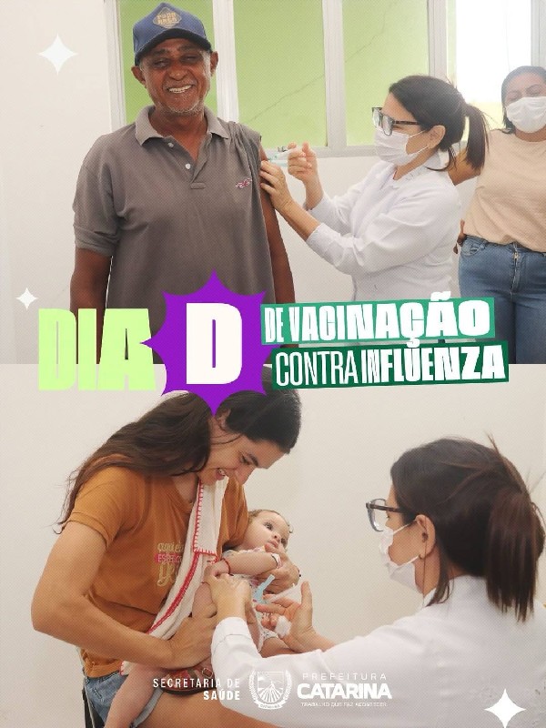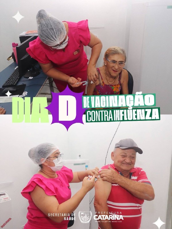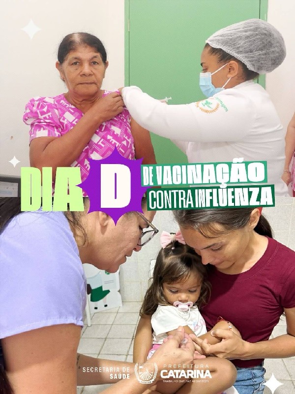 A Prefeitura de Catarina, por meio da Secretaria de Saúde, promoveu mais uma importante ação de cuidado com a população: o Dia D de vacinação contra a Influenza.