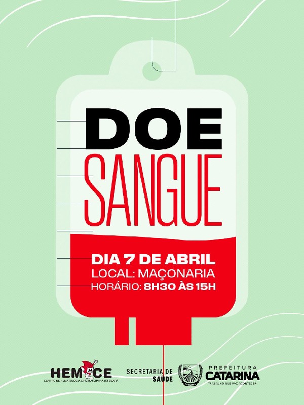 HEMOCE estará na Maçonaria de Catarina terça-feira (07/04)