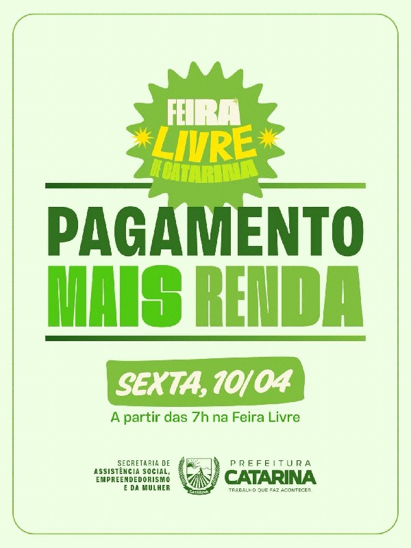 E para facilitar ainda mais, ele será realizado durante a Feira Livre de Catarina.