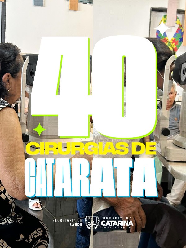 A Prefeitura Municipal de Catarina, em parceria com Instituto Yanny Brena, garantiu a realização de 40 cirurgias de catarata, beneficiando pacientes do nosso município.